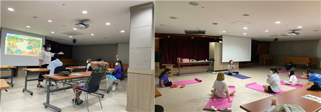 먼저 진행한 강원남부하나센터의 교육내용으로는 ‘인권, 건강, 진로, 자기이해’였고, 초등학교 고학년 청소년이 참석하였다. 강의내용 및 난이도는 참여자들의 연령과 배경을 고려하여 기본적인 이론교육과 더불어 실질적으로 도움이 되는 내용으로 진행하였다. 그 중 방학기간 동안 건강관리를 할 수 있도록 요가체험과 함께 건강관리방법에 대해 알아보았고, '나의 명함 만들기'를 통해 진로에 대해 탐색할 수 있는 기회를 제공하였다.