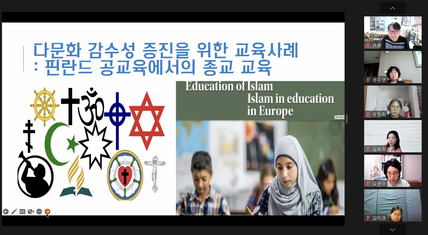 구기연 교수는 ‘한국사회는 무슬림들에게 곁을 내어 줄 수 없는가?’라는 질문과 함께 이슬람포비아 현상의 역사적 사회문화적 원인에 대해 심도 있게 분석하고 설명하였다. 이어 울산교육청의 아프간 특별 기여자 지원사례와 핀란드 공교육에서의 종교 교육사례를 통해 생동감 넘치는 국내, 해외 사례를 소개하면서 다문화 감수성 증진과 문화 다양성 인식 개선 방향을 제시하였다.