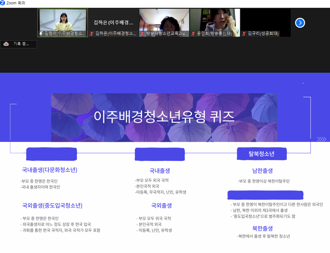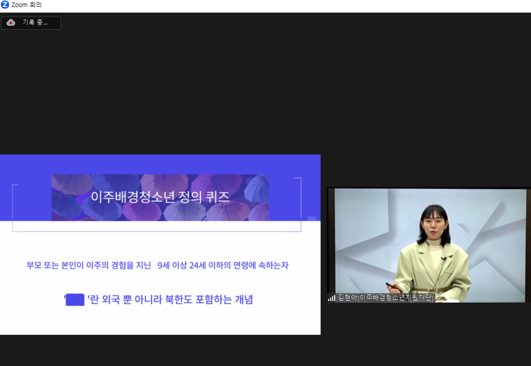 세 번째 과목은 '이주배경청소년 상담이란?'이라는 과목명으로 이주배경청소년지원재단 송아름부원이 진행하였다.