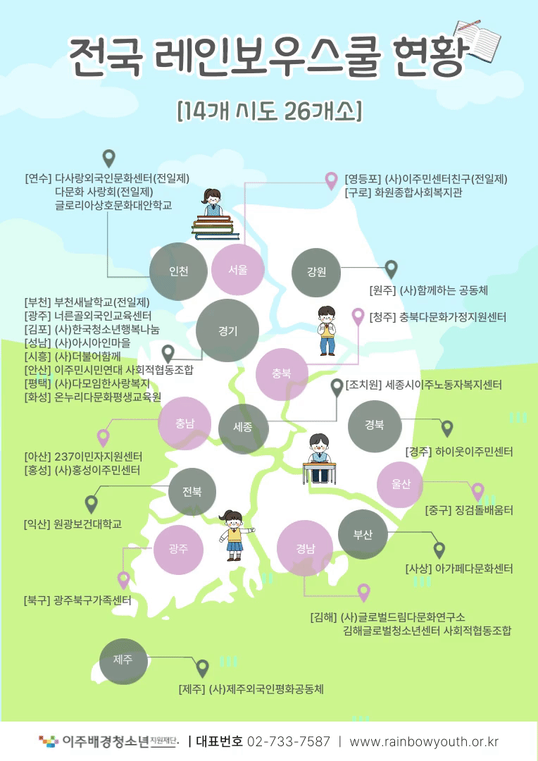 전국 14개 시도에 자리 잡은 레인보우스쿨(총 26개소)에서는