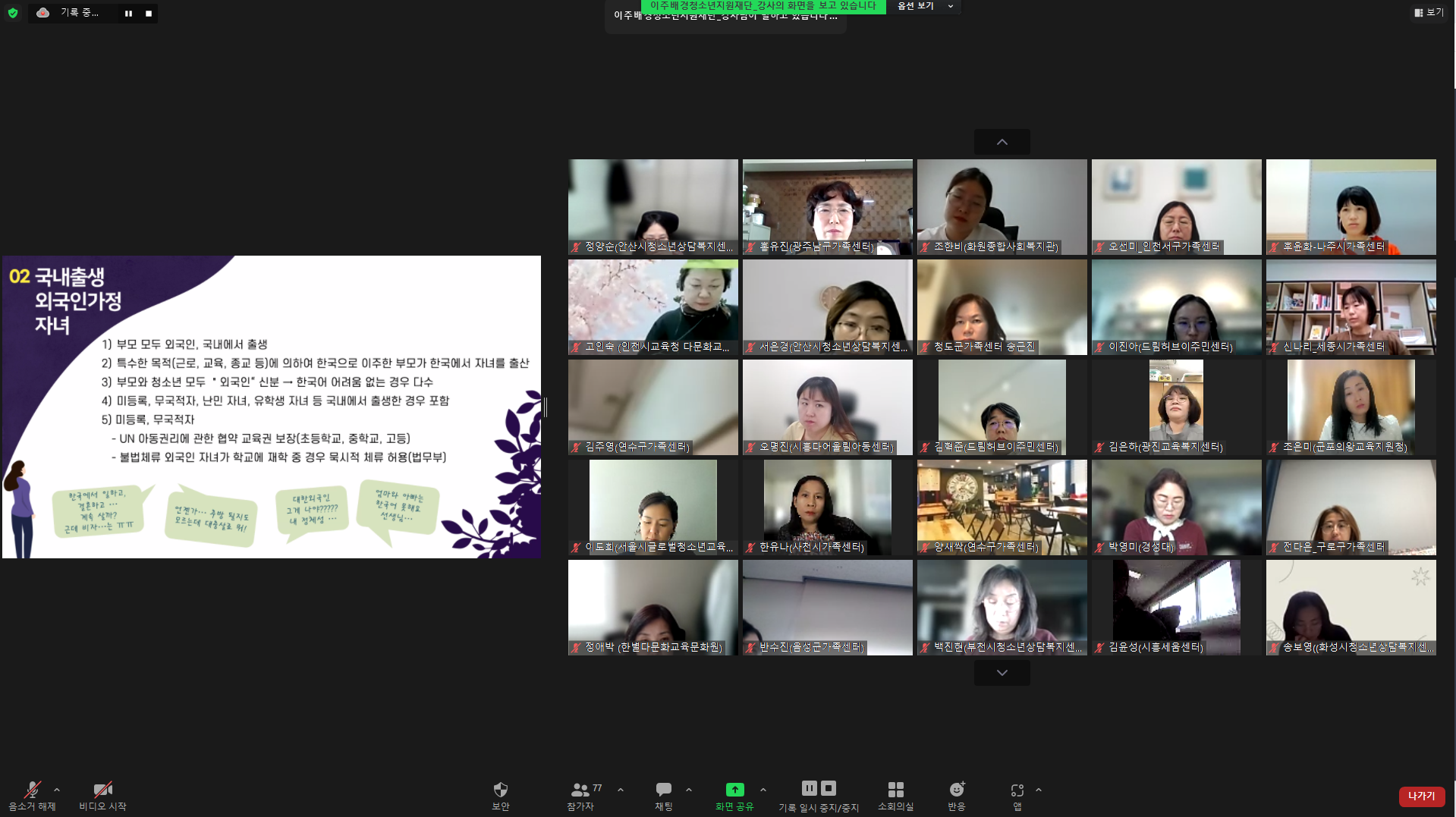 2023년 이주배경청소년 유관기관 실무자 1차 온라인 교육과정 실시