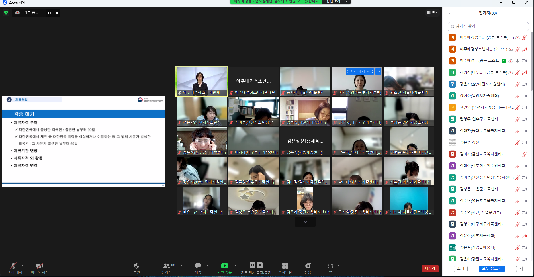 두 번째 과목은 '실무자가 알아야 할 이주배경청소년 체류정책'이라는 과목명으로