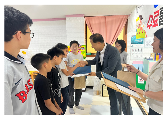 →수료증 및 선물 전달→상장 전달(우수상, 성실상)