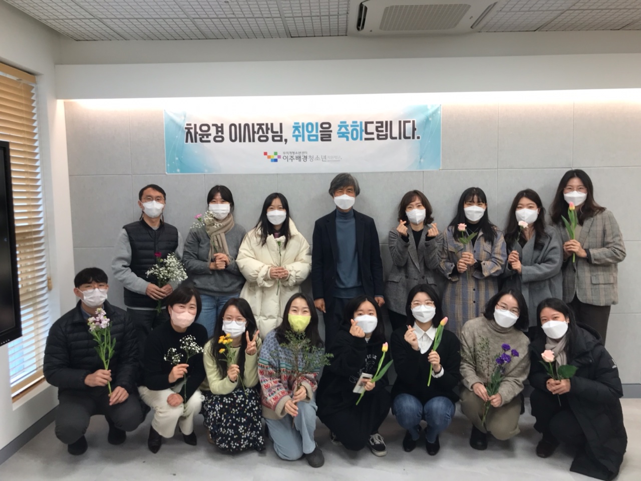 지난 1월 3일(월) 재단에서는 2022년 시무식과 함께 2021년 7월 신임 이사장으로 취임하신 차윤경 이사장님의 취임을 축하하는 자리를 가졌어요.