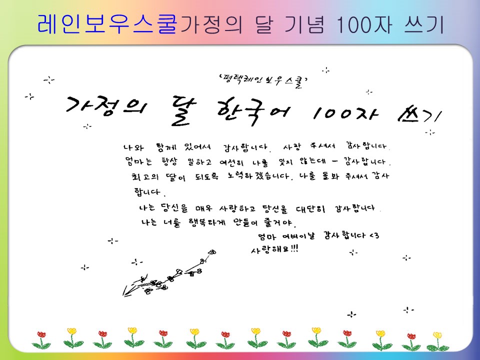 지난 5월 가정의 달을 맞이하여 100자쓰기 활동을 했다고 해요.✍