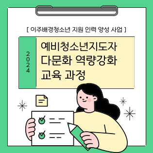 이주배경청소년 지원 업무 종사자들을 대상으로 온라인 기초 교육과정을 진행할 예정입니다. 상하반기 각 2회씩 진행할 계획이니 많은 참여 바랍니다! |