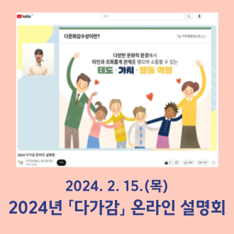 24년에도 청소년들의 다문화감수성을 증진하기 위해 앞장설 기관을 접수하고 있습니다.