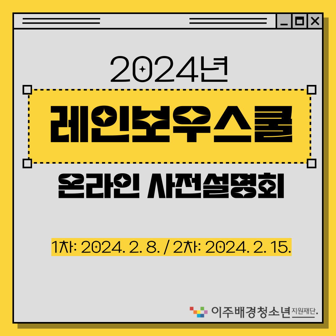 지난 2월 8일과 15일 2차에 걸쳐 레인보우스쿨 사업에 대한 온라인 사전설명회를 실시하였습니다. 올해는 새로운 운영 방식을 도입하였는데요. 전구 20개소 내외, 이주배경청소년 연 650명을 지원할 예정입니다. 4월부터 시작될 NEW 레인보우스쿨!! 기대해주세요⭐ |
