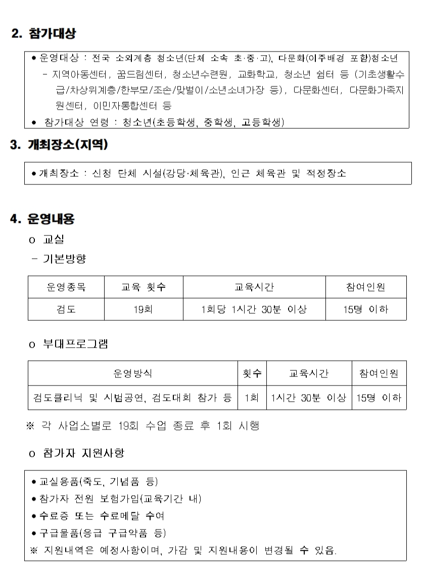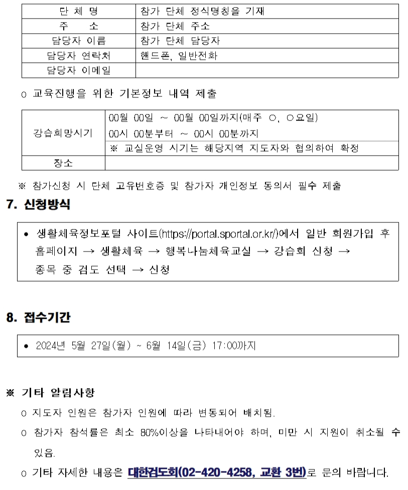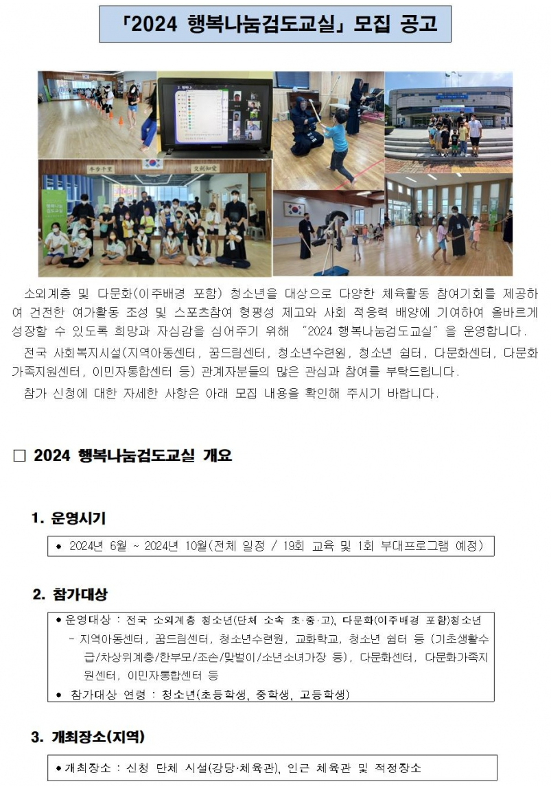 「2024 행복나눔검도교실」을 모집하고 있습니다.