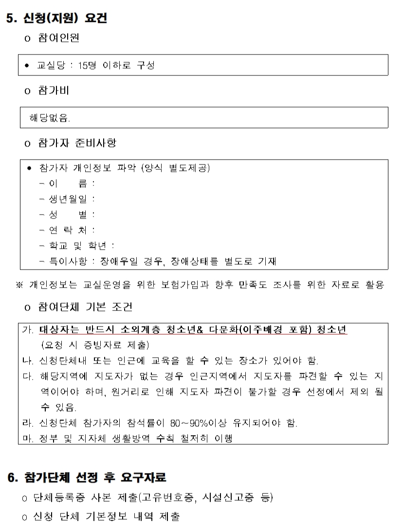 대한검도회에서 소외계층 및 다문화(이주배경 포함) 청소년들을 대상으로