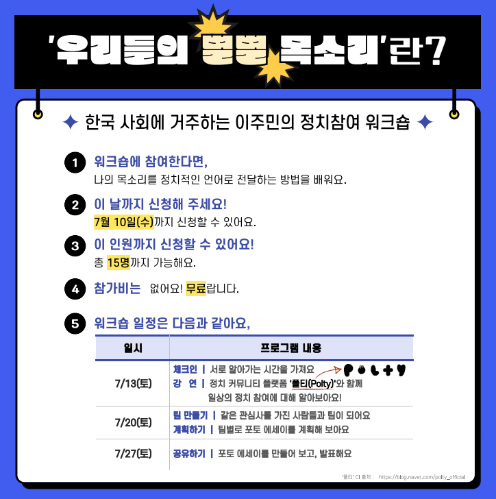 [루트임팩트 프로젝트팀 'SWIM'] 이주민 사회참여 프로그램 '우리들의 별별 목소리'
