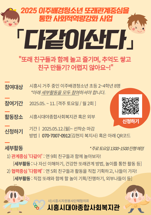 [시흥시대야종합사회복지관] 이주배경청소년 사회적역량강화사업 '다같이산다' 참여자 모집
