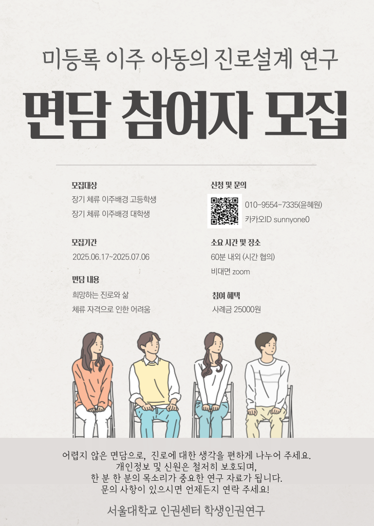 [서울대 인권센터 학생인권연구] 미등록 이주 아동의 진로설계 연구 면담 참여자 모집
