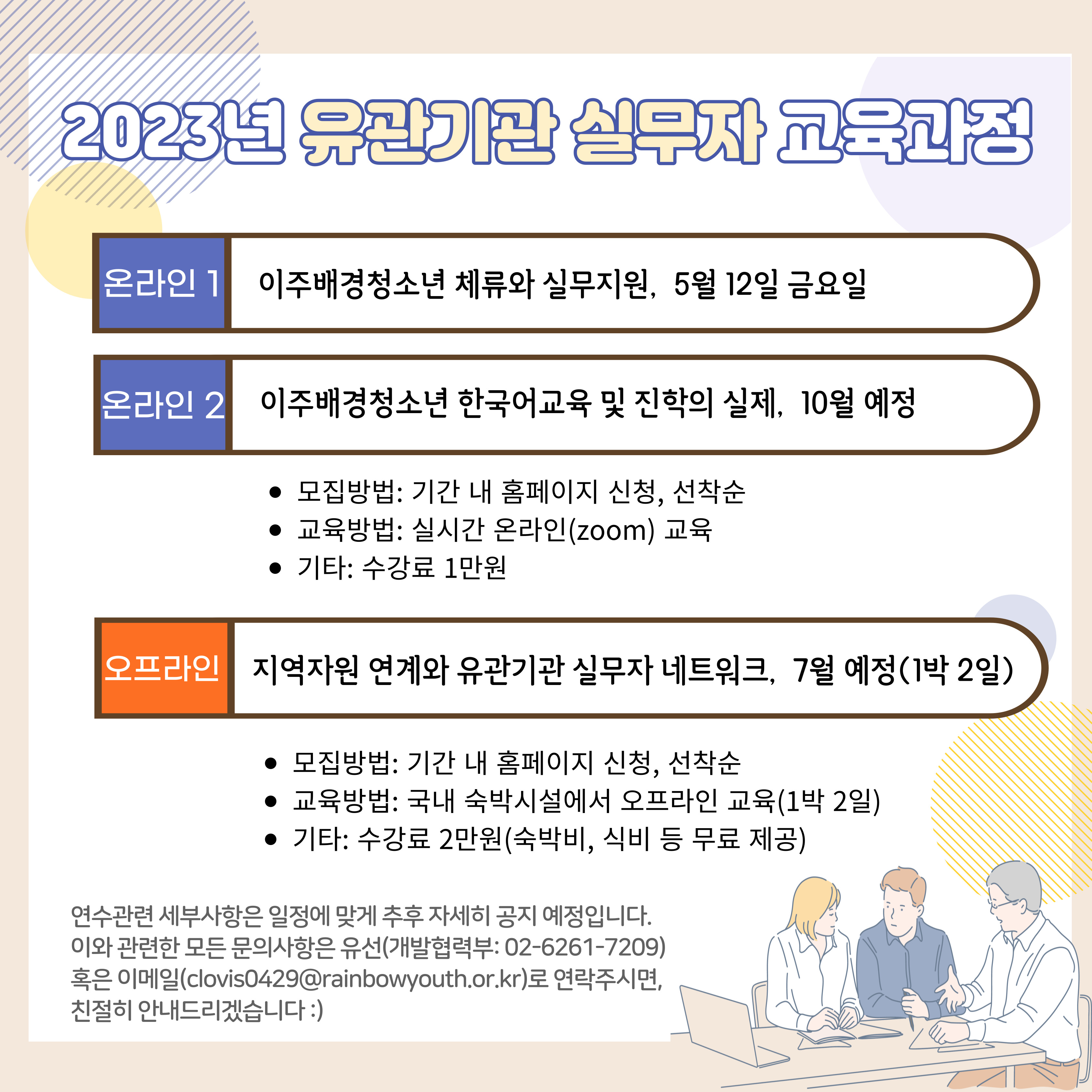 2023년 유관기관 실무자 교육과정 연간일정 안내