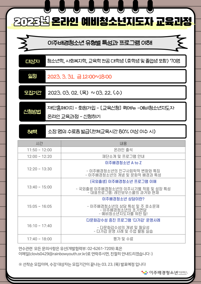 [예비청소년지도자] 이주배경청소년 유형별 특성과 프로그램 이해(온라인)_교육신청