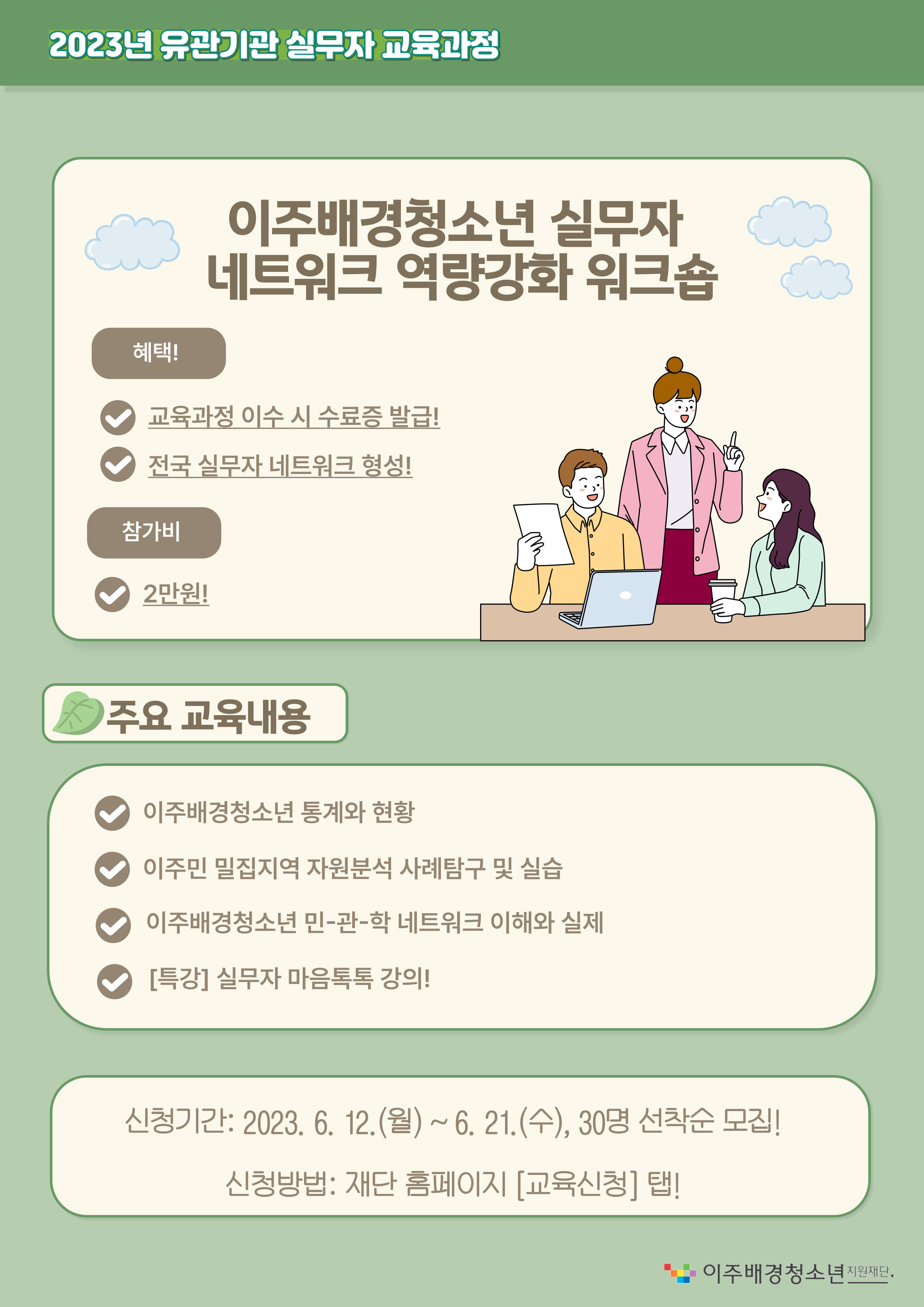 - 대상: 이주배경청소년·다문화가족·이민자·청소년 관련 실무자 30명(선착순 모집)