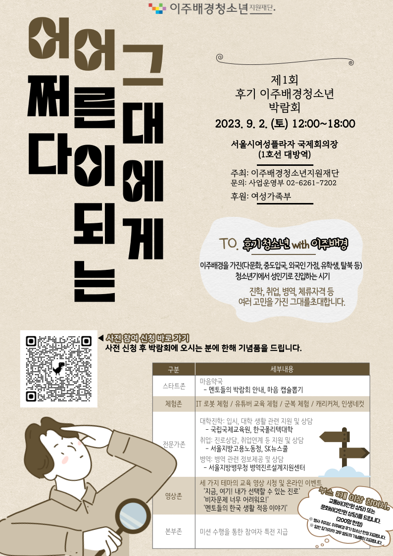 제1회 후기 이주배경청소년 박람회 '어쩌다 어른이 되는 그대에게'를 개최합니다.
