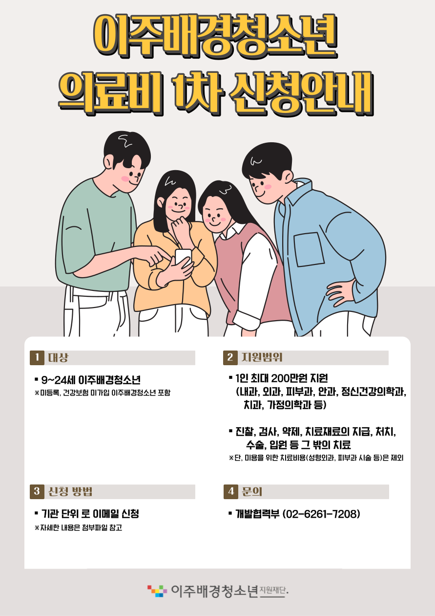 2024년 이주배경청소년 의료비 1차 신청안내
